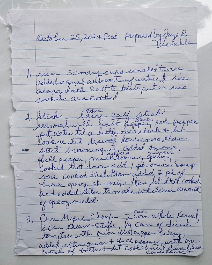 See Faye’s handwritten recipe below.